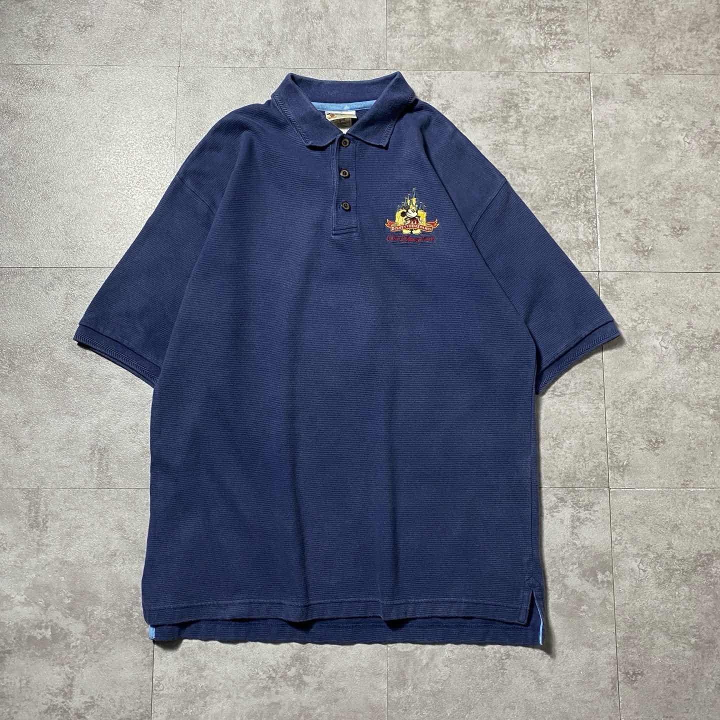 【XL】90s-00sオールドディズニー 刺繍ワンポイント ミッキー ポロシャツ