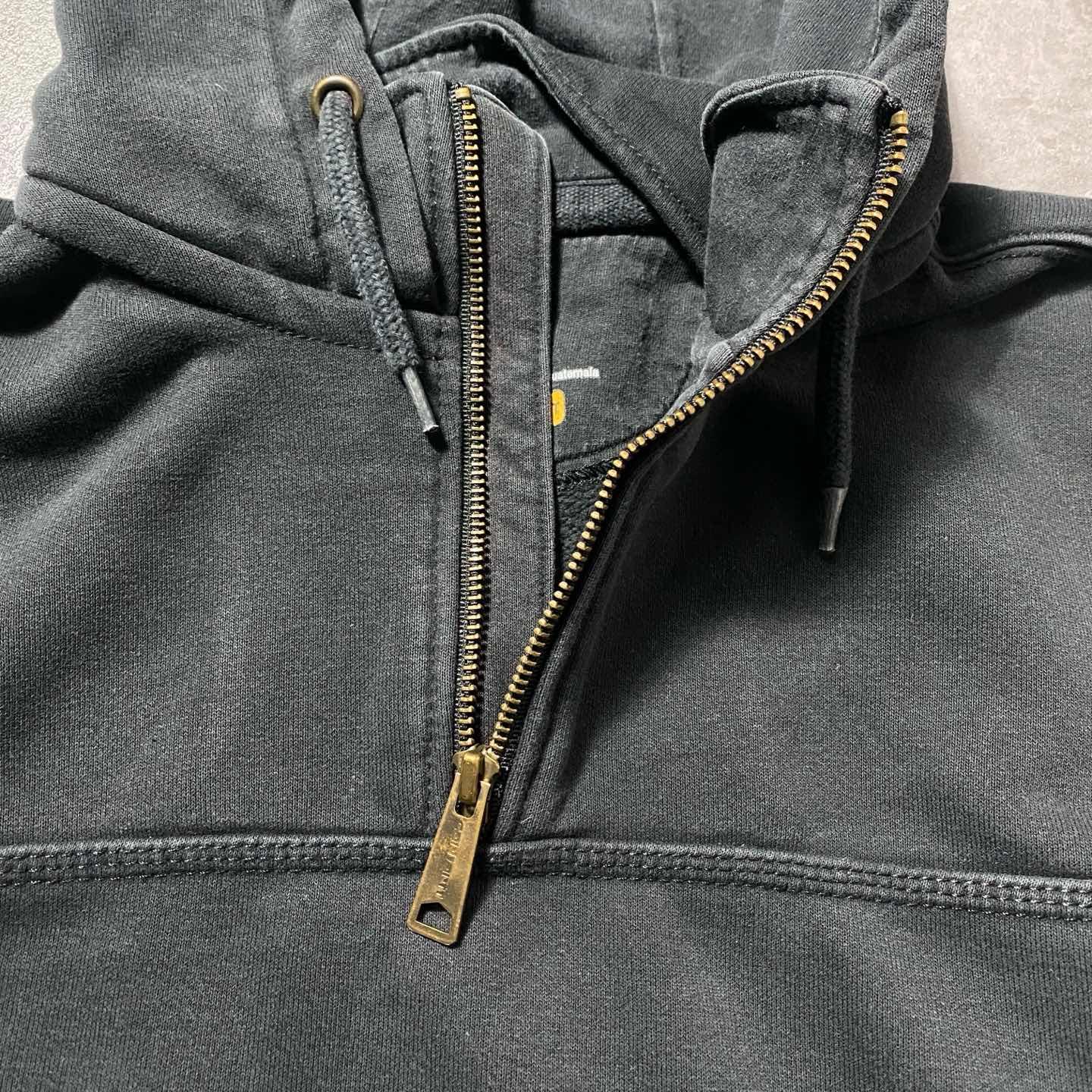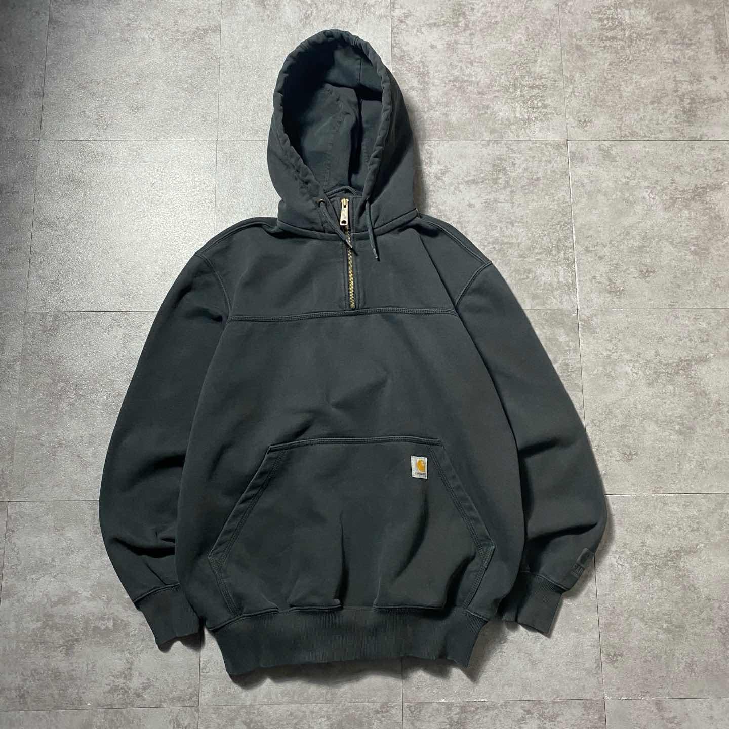 carhartt カーハート ハーフジップ 刺繍企業ロゴ ヘビーオンス ダメージ パーカー