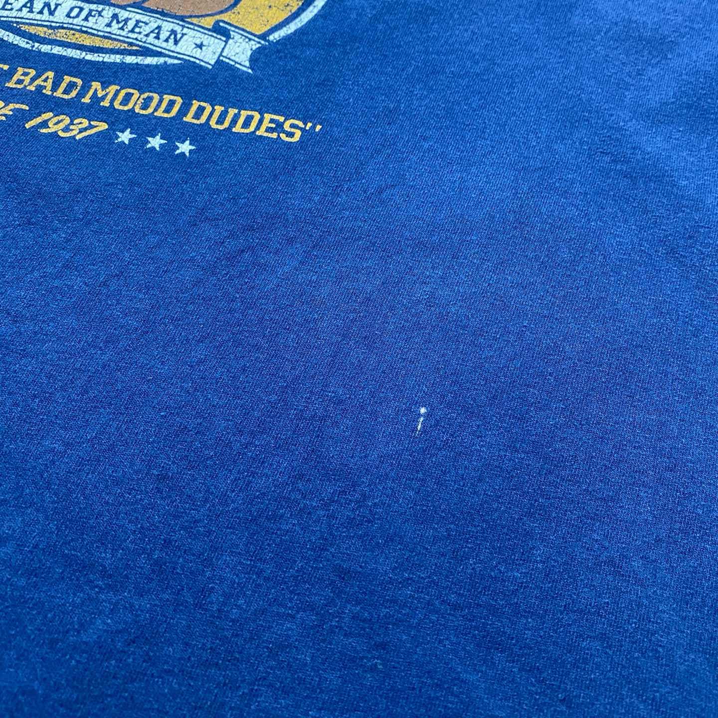 ◯ Explanation ◯ ディズニー作品『白雪姫と七人のこびと』より、“最も気難しいキャラクター”として知られるGRUMPY(グランピー)を落とし込んだ一枚。 フロントには大学ロゴを模した「GRUMPY U」デザイン。 “DEAN OF MEAN(意地悪学部長)”や “HOME OF THE BAD MOOD DUDES(不機嫌なやつらの巣窟)”といった皮肉の効いたワードが並び、キャラクターの性格をユーモラスに表現しています。 ネイビーボディにイエロー×ホワイトの配色は王道ながら、ひび割れたプリントの風合いがヴィンテージライクな雰囲気をプラス。 ストリートにも馴染む、抜け感のあるディズニーアイテムです。 サイズはXLで、ゆったりとしたシルエット。 ワイドパンツやデニムとの相性も抜群で、 一枚でもレイヤードでも活躍する万能な一着。 “可愛さ”ではなく“毒っ気”で魅せるディズニー。 人と被らないキャラクターTを探している方におすすめです。 ○Size○ 表記→XL ・着丈72 ・身幅63 ・肩幅58 ・袖丈20 (cm) ○Color○ ・ネイビー ○Material○ ・100%コットン ○Condition○ ・フロントロゴ付近に薄汚れ箇所あり ・左脇下小さなほつれあり ○Caution○ 当店で取り扱っている商材は全て『古着』となっております。 そのため、多少の状態難(ほつれ、傷、汚れ、リブの伸び、使用感、擦れ、色あせ、etc)がある場合がございます。 新品同様の完璧なお品物をお求めの方は当店でのお買い物を控えて頂きますよう宜しくお願いします。 また、購入された商品に関しましては、購入日時から起算して『72時間以内に』発送手続きの方を取らせて頂きます。 お急ぎの場合は購入前に当店オンラインストアの方にお問い合わせ頂きますよう宜しくお願いします。 26/362
