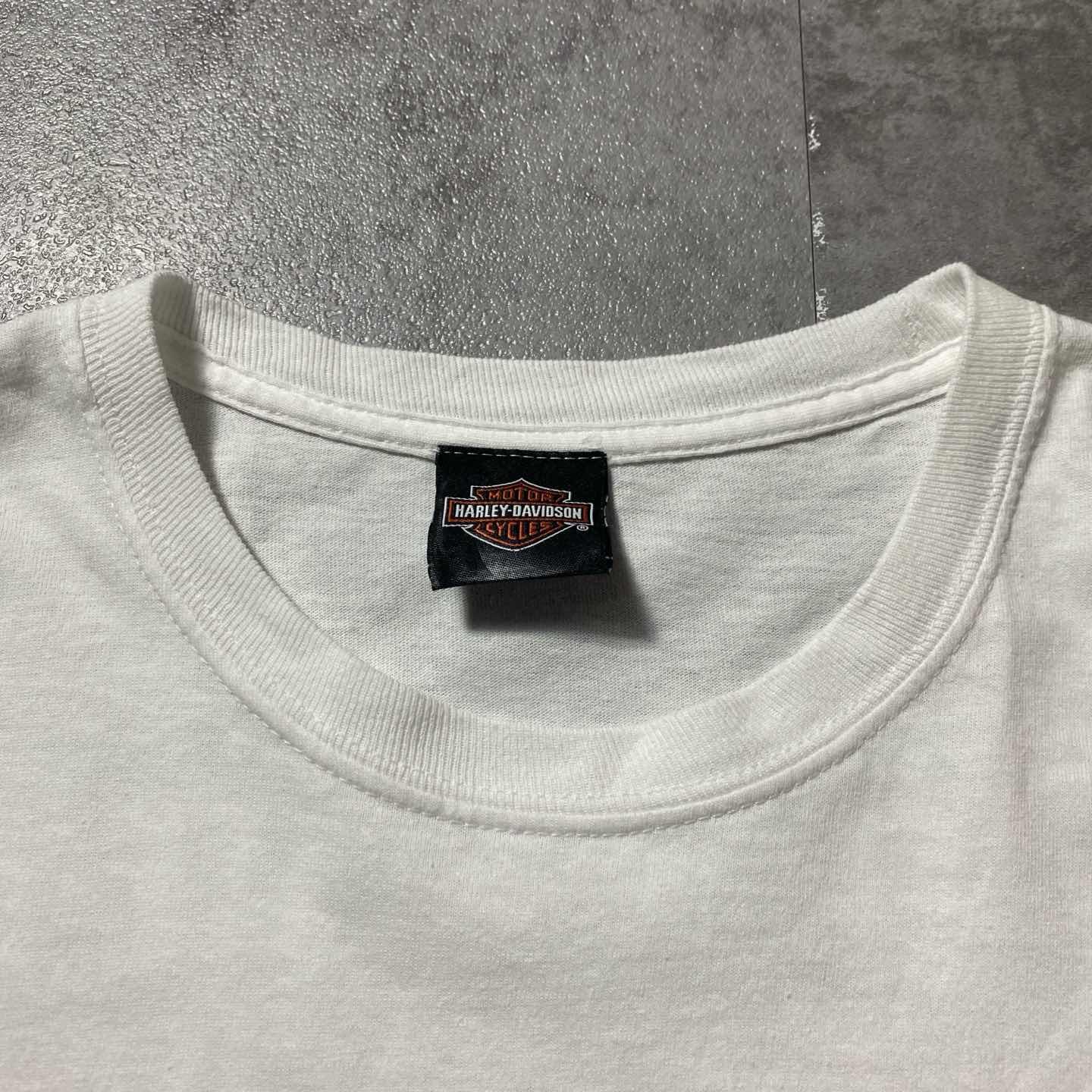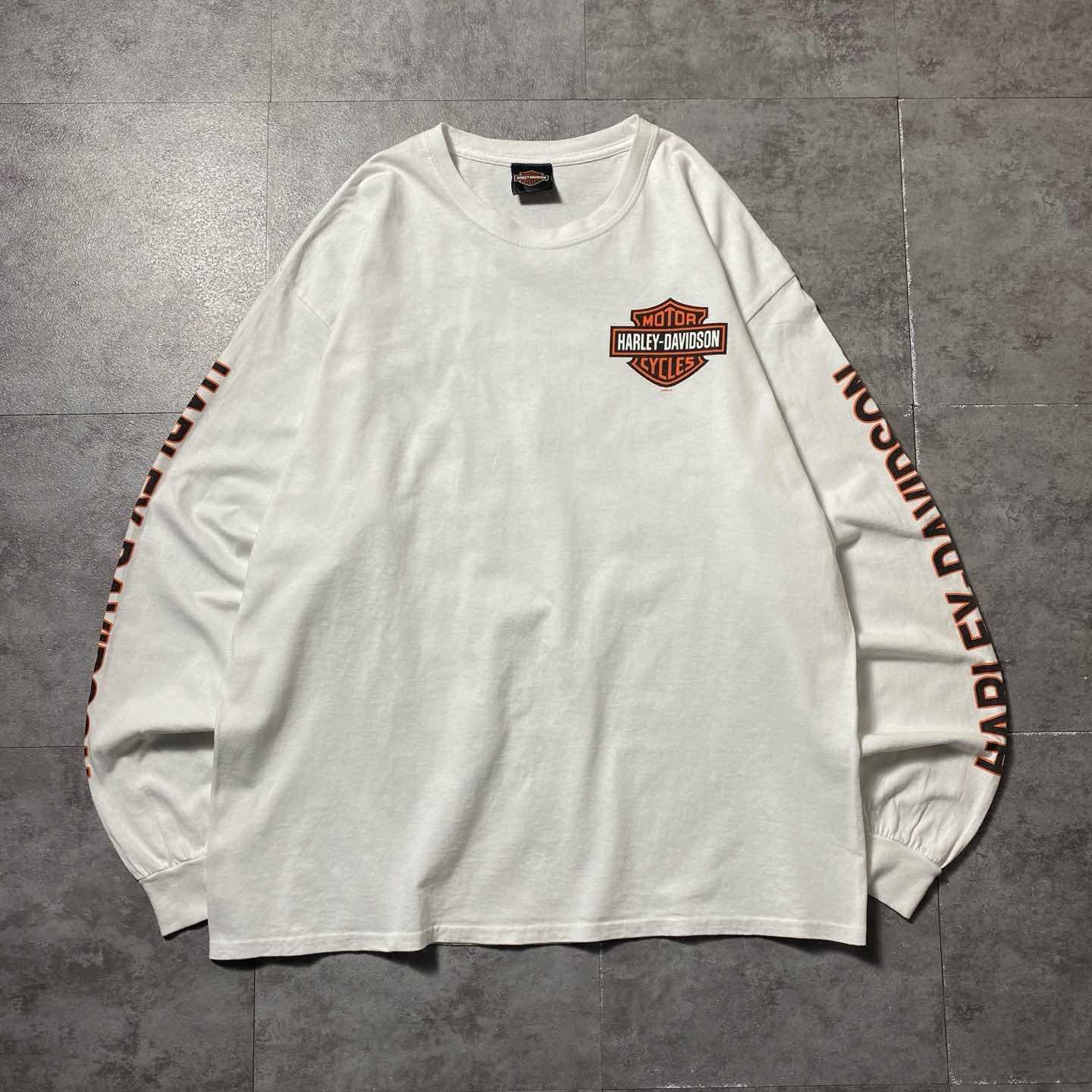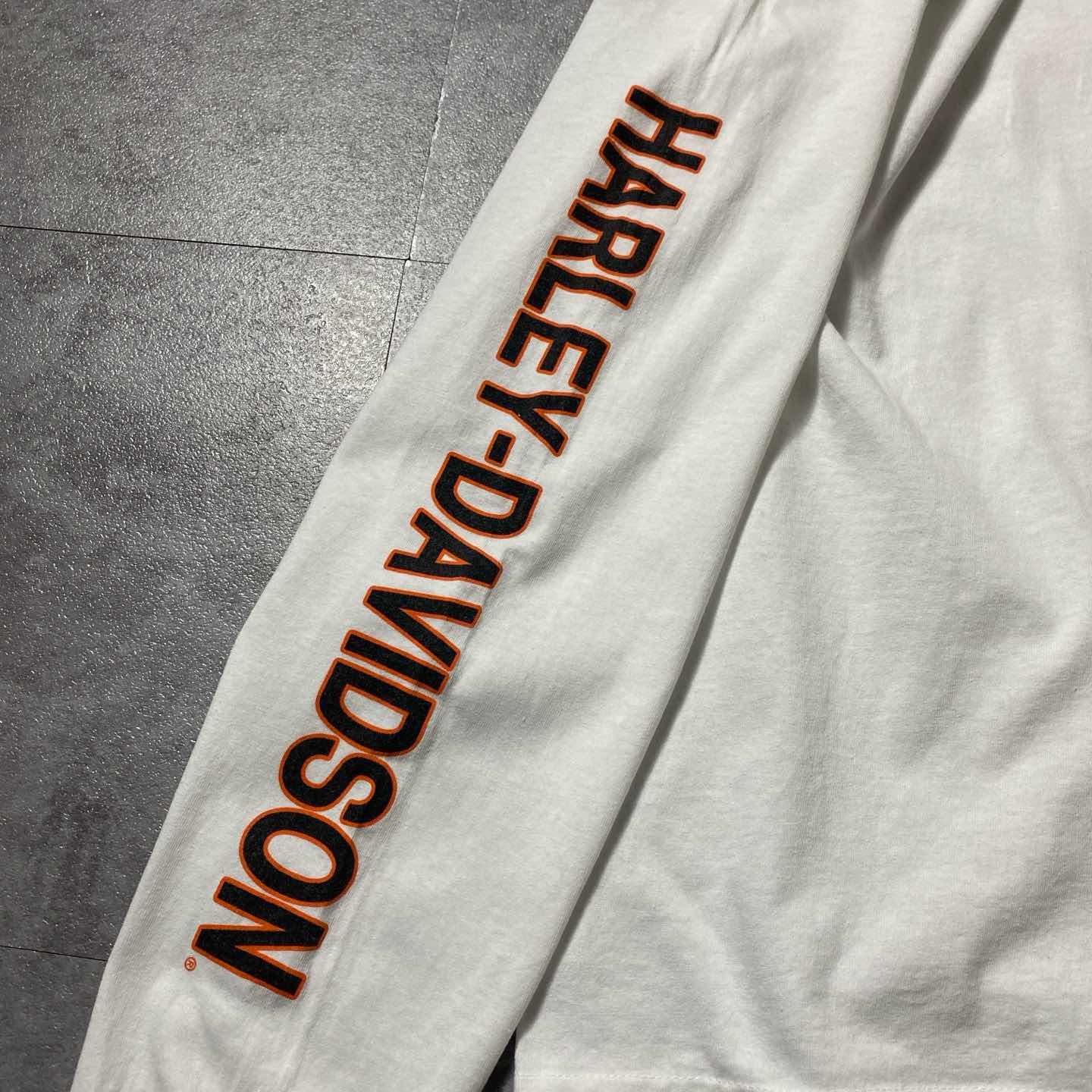 00s ハーレーダビッドソン スカル センター刺繍ロゴ 白 Tシャツ ロンT