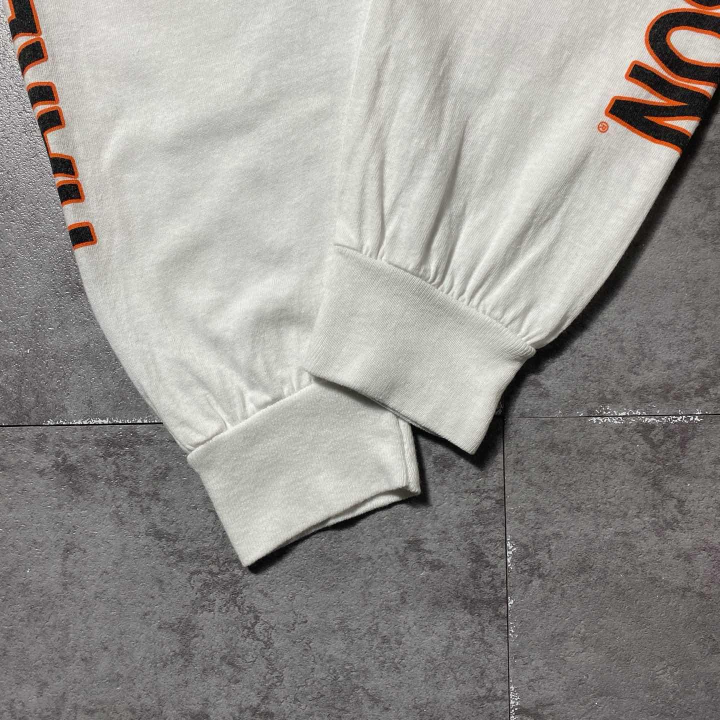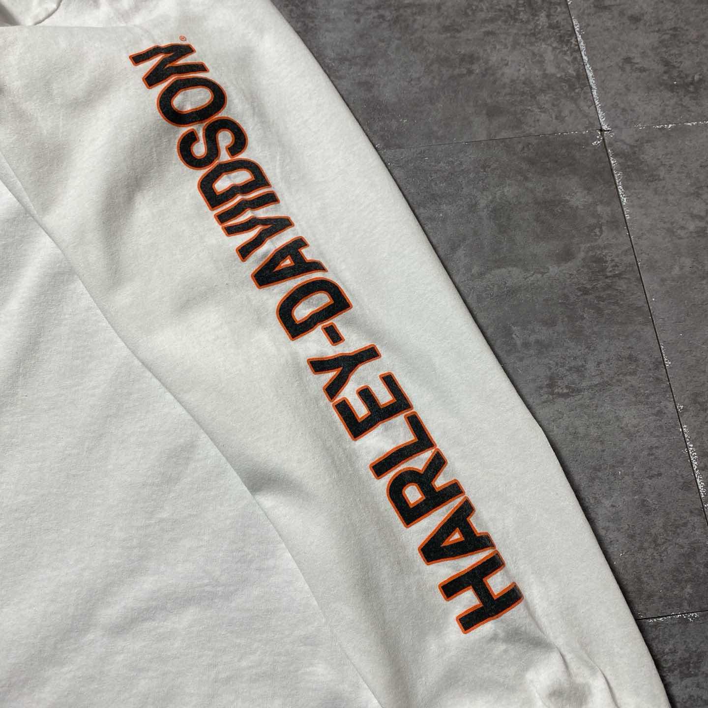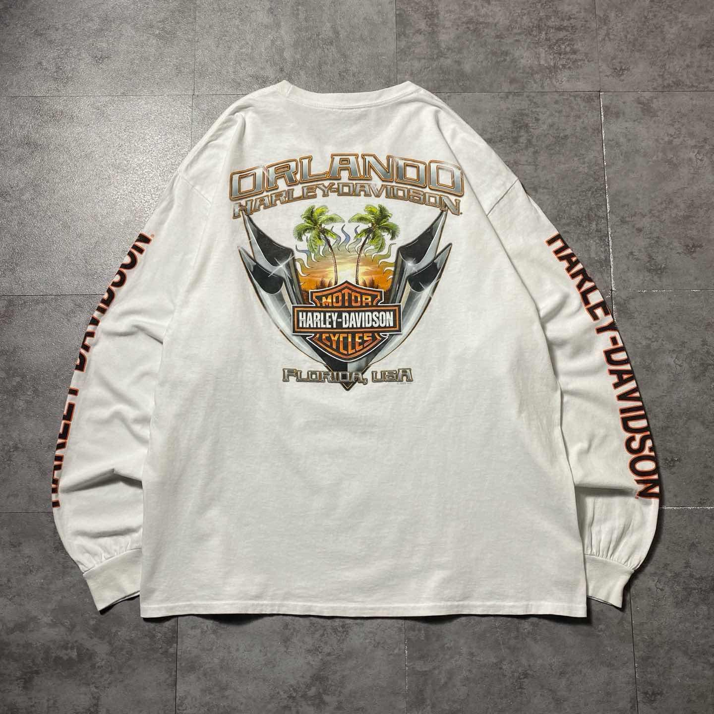 00s ハーレーダビッドソン スカル センター刺繍ロゴ 白 Tシャツ ロンT